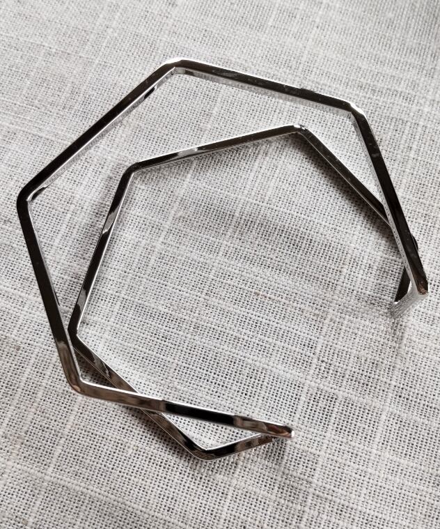 スッキリとしたスクエア型のバングル。つけ心地も軽く素肌に直接着けても、タイトなカットソーやニットにも。フリーサイズでさっと着けられて毎日の定番になりそうなバングルです。